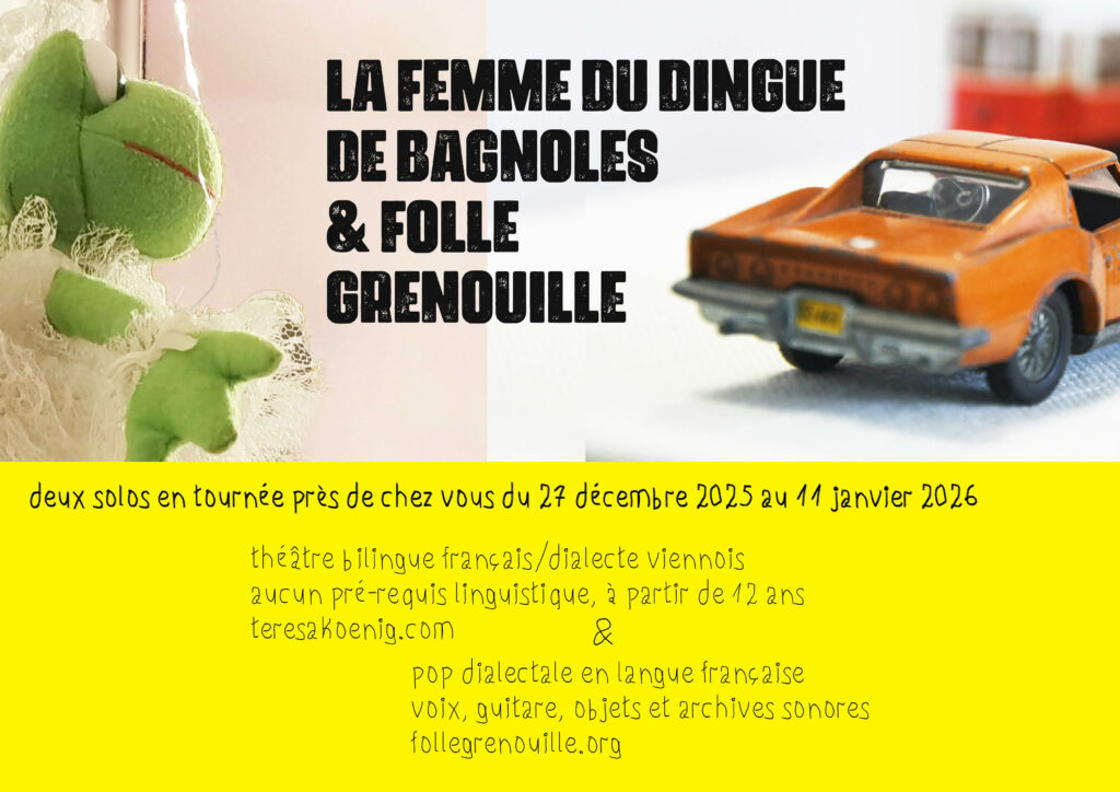 Le Cabaret Estuaire de Folle Grenouille est un seul en scène qui mêle chansons, poésie, archives et performances sonores, objets, récits, dans un territoire mélangé, sauvage, humain, magnifique, contaminé, désorienté, habité, l’estuaire de la Loire, ses marais commensaux et son bord de mer. C’est aussi une enquête farfelue menée à la force musculaire et en folle jactance de la langue. L’estuaire, c’est nous. La tournée emmène le Cabaret Estuaire dans onze lieux éclectiques et hospitaliers, à vélo. Automnal, nous savons aussi qu’il n’y a pas de mauvais temps mais seulement des vêtements inadaptés.